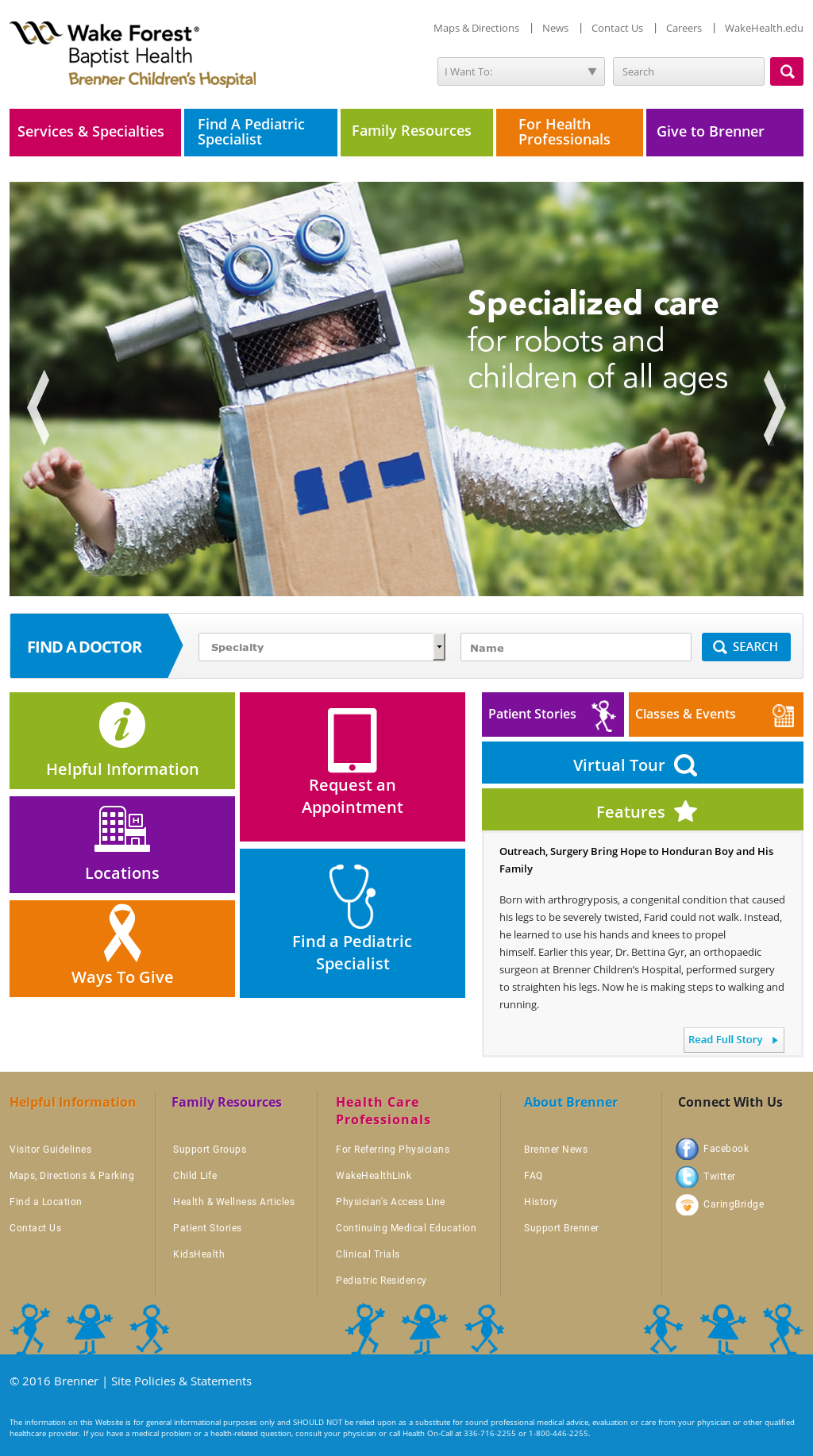 Brenner childrens hospital is an internationally renowned pediatric hospital with expertise in childrens medicine located in winston salem north carolina. We are passionately committed to saving childrens lives and dedicated to providing the best approaches to healing. Brenner childrens hospital is the 144 bed is hospital within a hospital affiliated with wake forest baptist medical center and wake forest university in winston salem north carolinait provides care to patients from birth to age 18 and is staffed by more than 120 full time pediatric faculty members representing more than 30 areas of expertise as well as all pediatric surgical specialties.