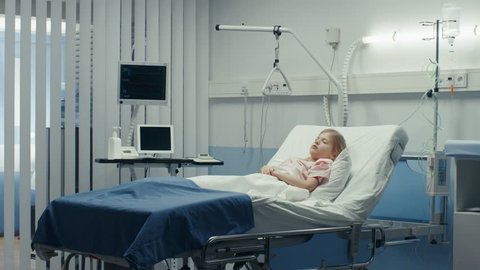 Cute Little Sick Girl Sleeps On A Bed In The Children S Hospital Modern Pediatric Ward With Top Quality Health Care